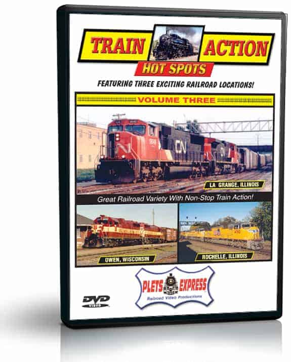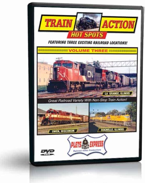 Three great locations: Rochelle, Illinois * La Grange, Illinois * Owen, Wisconsin. Great railroad variety and no train is seen more than once! Each volume has three great railroad hot spots and the non-stop train action features approximately 75 run-bys. Hear the rumble of the locomotives and witness the fascinating variety of freight cars. The sights and sounds are just like being trackside. You’ll be wondering what’s coming down the line next!